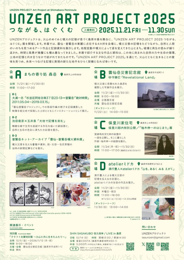 「UNZEN ART PROJECT 2025」を通じて、火山とともに生きることの意味を見つめ、未来へつなげる記憶と表現の新たな地平をひらく契機となれば幸いです。
